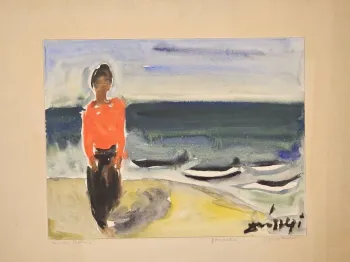 Use our Advanced Search tool, select the "sold" category and Specify Size, Technique, and the Artist to find the real market value of the artwork.
